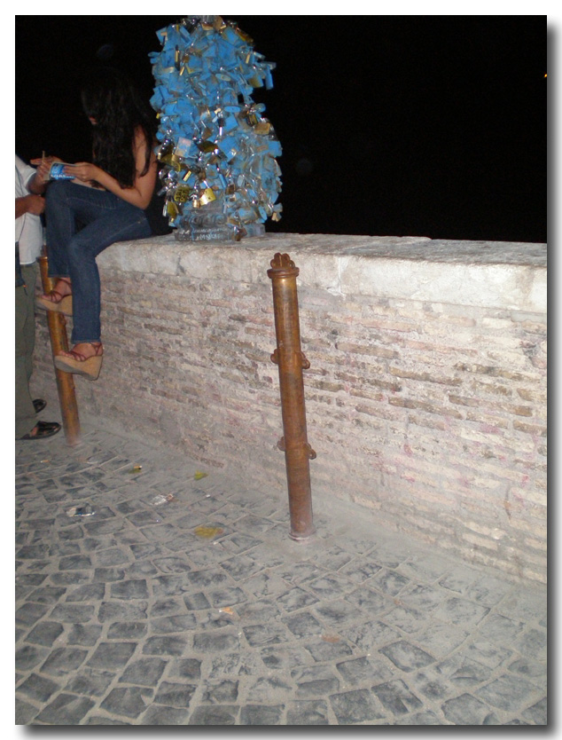 Dai lucchetti sui lampioni veri a quelli virtuali (sul divertente sito appositamente creato) ora siamo ai lucchetti sulle catene. Ci troviamo sempre a Ponte Milvio ma l’appendi-lucchetto è nuovo: oggi è infatti quasi terminata l’installazione delle “colonnine dei sentimenti”, paletti in ferro realizzati dallo scultore Gabriele Simei per conto della Sovrintendenza ai Beni Culturali del Comune di Roma. Parliamo di 24 colonnine dell’altezza di circa un metro che sono state installate sui due lati di Ponte Milvio in corrispondenza dei quattro lampioni centrali sui quali gli innamorati da mesi attaccano lucchetti di ogni dimensione, quale pegno di amore eterno suggellato dal lancio della chiave nelle acque del Tevere.