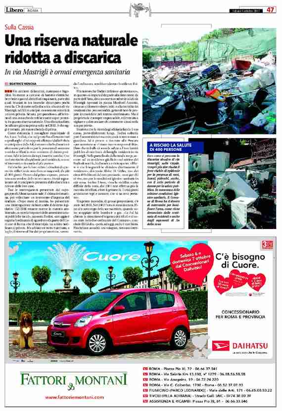 Una robusta voce del mondo dei media, Il quotidiano Libero, ha dedicato nella sua edizione di sabato 6 ottobre mezza pagina della cronaca romana a Via Mastrigli narrando l’odissea dei suoi residenti e stigmatizzando le responsabilità delle istituzioni che ancora non hanno risolto il problema.