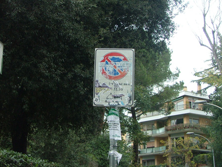 Spostiamoci ora in via della Farnesina, una manciata di metri prima di piazza Moizo, dove esiste una stradina senza uscita, confinante con il Parco Tassoni, che consente l’ingresso al comprensorio del civico 269. Una stradina interessata esclusivamente dallo scarso traffico delle auto che entrano ed escono dallo stesso e che quindi potrebbe essere usata anche come comodo parcheggio dai residenti, da chi porta il proprio cane al Parco e dalle decine di impiegati che lavorano in un palazzo uso uffici proprio di fronte. Peccato però che su questa stradina ben 3 cartelli di divieto di sosta, posti a pochi metri uno dopo l’altro, impediscano perentoriamente di parcheggiare l’auto. A parte il proliferare di cartelli, ma cui prodest impedire la sosta? (con l’occasione ricordiamo che esattamente all’altezza di questa stradina i residenti attendono da altre 10 mesi un semaforo pedonale….)