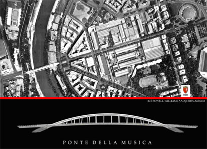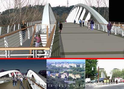 Nelle prossime settimane è atteso il via alla costruzione del nuovo Ponte ciclo-pedonale denominato “il Ponte della Musica” che unirà le due sponde della zona settentrionale di Roma, il quartiere Flaminio con le pendici di Monte Mario ed il Foro Italico. In particolare il progetto prevede il collegamento del Lungotevere Flaminio, in riva sinistra (in asse Auditorium, Villa Glori), con il Lungotevere Maresciallo Cadorna in riva destra (Complesso sportivo del Foro Italico) congiungendo inoltre alla quota del fiume la pista ciclabile che parte da Castel Giubileo.