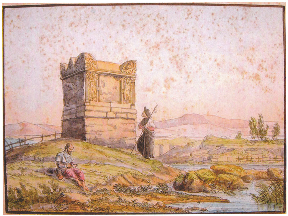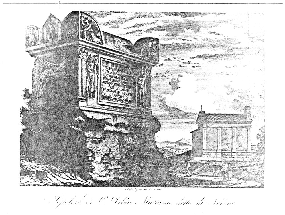 Sepolcro di C.Vibio Mariano detto di Nerone – incisione di A. Aquaroni.