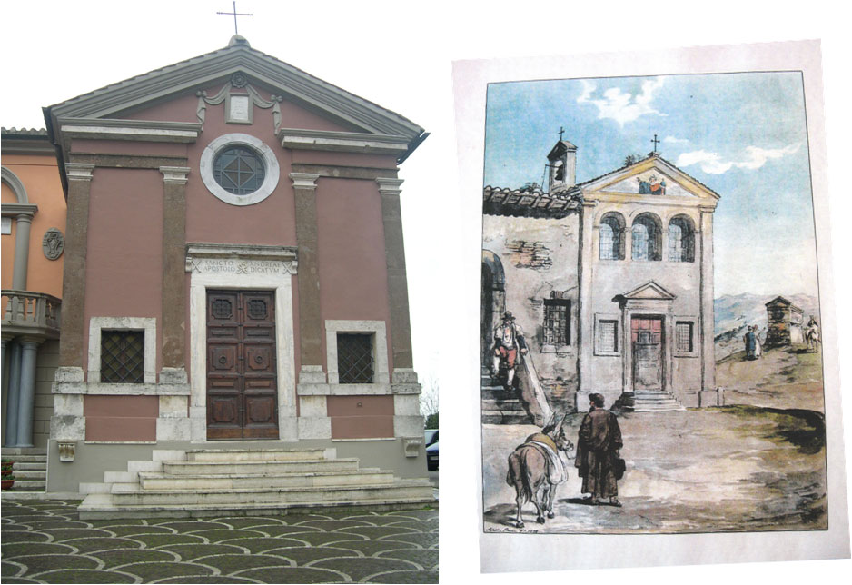 Veduta della chiesa di S. Andrea, oggi detto “Vecchio,”da una incisione acquerellata di Achille Pinelli, 1835.