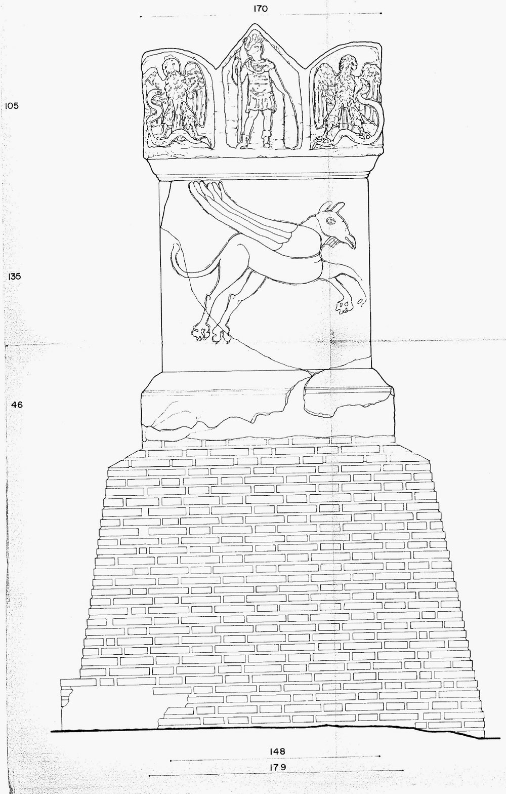 Brusco è il distacco che si ha nell’osservare la resa del rilievo che interessa i lati corti rispetto alla fronte: forse è stato eseguito da un aiuto di bottega che ancora mostra incertezza nello stile, poco raffinato e nella sommaria cura dei particolari. L’altra ipotesi vede questo bassissimo rilievo come aggiunta decorativa realizzata in un secondo momento. Ad ogni modo i lati corti sono interessati dalla raffigurazione di due Grifi Alati, uno su ciascun lato: sul fianco sinistro l’animale è ritratto imberbe proteso in un poderoso salto che lo lascia a mezz’aria nel vuoto della lastra.