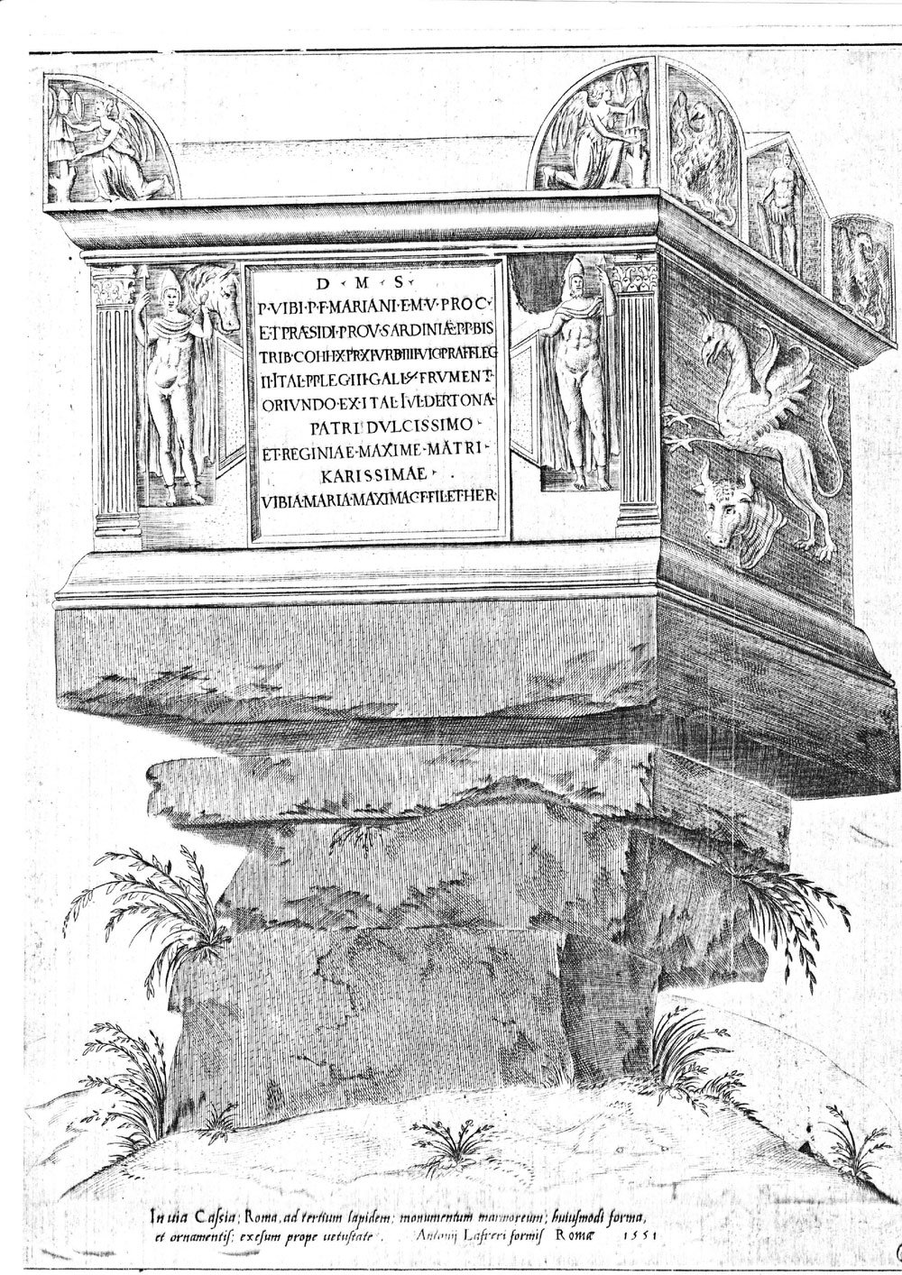Roma ad terzium lapidem: monumentum marmoreum”,incisione di A. Lafrery, 1551.
