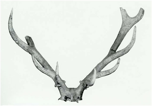 PONTE  MILVIO Dama dama tiberina (= Dama quirinus), cranio incompleto e palchi in norma, frontale (Museo di Paleontologia dell’Università di Roma “La Sapienza”)  Pleistocene medio 200.000/125.000 anni fa.