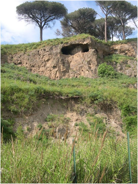 VIA FLAMINIA km 8.2. Panoramica dell’affioramento al Km 8.2 della Via Flaminia  da cui provengono un cranio ed uno scheletro incompleto di Mammuthus.
