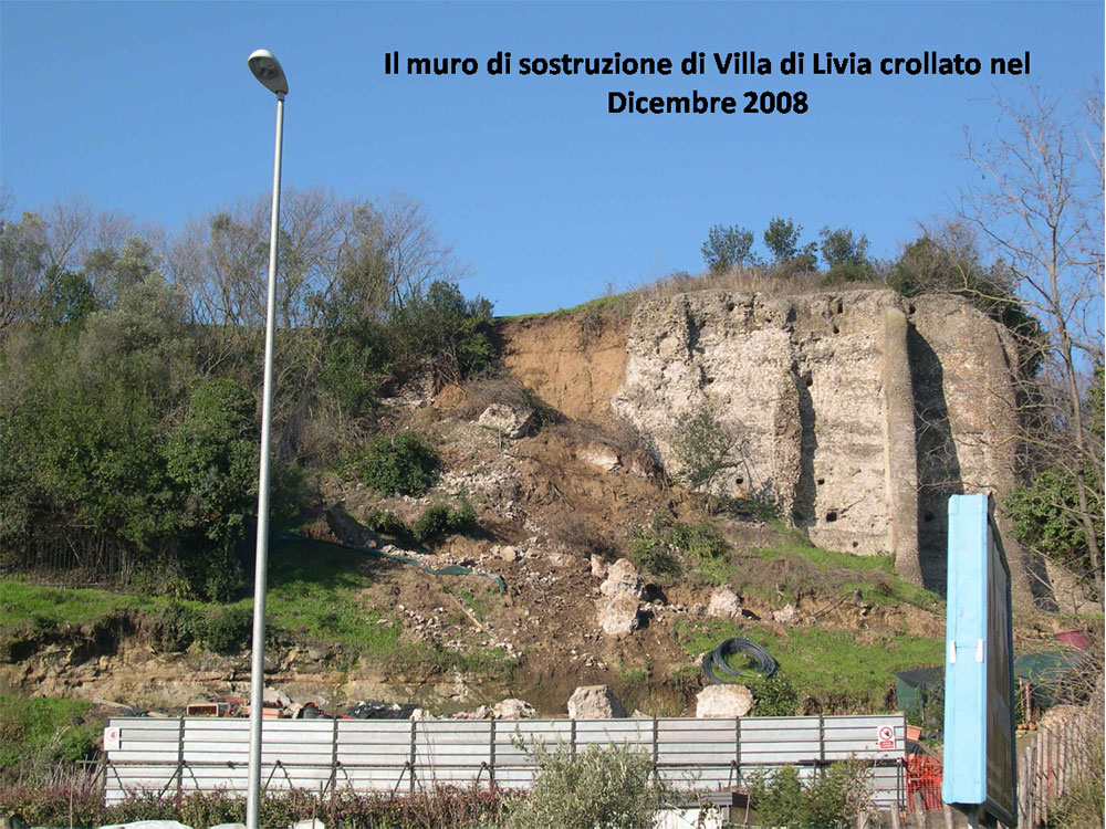 Il muro di sostruzione della Villa Livia crollato nel Dicembre 2008
