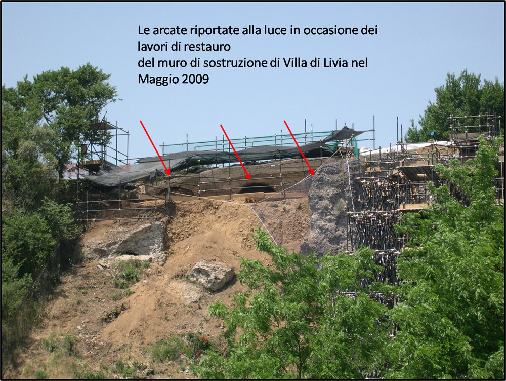 La nuova visione suggerisce alcune ipotesi; se fossero delle sostruzioni potrebbero, per esempio, ricordare quelle del Tempio di Giove Anxur a Terracina che risale al I sec. A.c., dove una serie di dodici arcate perimetrali a vista costituiscono la terrazza di fondazione dell’edificio sacro. Questi archi danno accesso ad ambienti che comunicano con un  corridoio ipogeo. A Villa di Livia queste ipotetiche sostruzioni, avrebbero potuto avere la funzione di contenere il giardino soprastante nella sua prima edificazione, anche se da quel poco che si vede, non si hanno tracce di un paramento concepito per essere lasciato a vista.