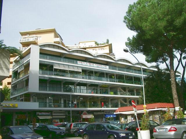 Piazza Stefano Jacini. Dalle ricerche emerge che la nostra Piazza ha un importante numero di attività commerciali, perché essa è stata la prima piazza di Roma a disporre di un centro commerciale, realizzato su progetto dell’Architetto Luigi Piccinato, a più piani con servizi comuni con i negozi affacciati su luminose balconate servito da ascensori e scalinate, insomma antesignano di quei centri commerciali di oggi dove entri e non vedi più la luce.