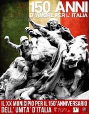 Il XX Municipio onorerà il 150° dell’Unità d’Italia con una grande manifestazione che si terrà mercoledì 8 giugno a Ponte Milvio. L’evento è stato annunciato in una conferenza stampa tenutasi il 31 maggio nella Sala Consiliare di via Flaminia 872 dove sono stati illustrati gli aspetti culturali, storici e sociali dell’iniziativa riassumibili in una frase: festeggiare il 150° portando le istituzioni a contatto diretto con i cittadini sotto un unico vessillo tricolore il cui motto sarà ” 150 anni di amore per l’Italia”.