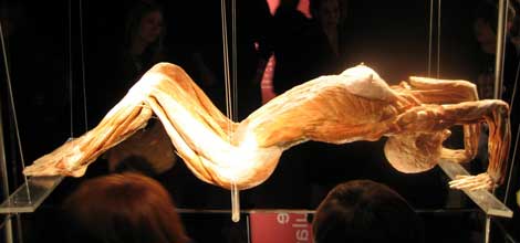 1. Dopo aver letto (per la prima volta) di questa mostra sul blog, perplessa veramente, mi sono un’attimino andata a documentare. In effetti Von Hagens è un personaggio decisamente discusso, e controverso è il parere sullo scopo dell’esposizione di questi corpi, che molti giudicano, più che scientifico, morboso. Anche perchè di naturale c’è ben poco, a partire dalle posture in cui sono combinati i cadaveri. Ho addirittura visto la foto della simulazione di un atto sessuale con conseguente divieto in Germania di esporli! Sono perplessa anche all’idea di portarci le scolaresche. Pur non avendo visto la mostra, dalle foto mi sembra una cosa per stomaci forti, e non so che impressione potrebbe fare ai bambini o ai ragazzi.