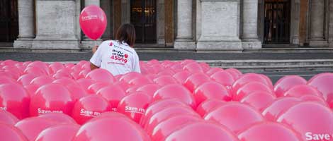 Una grande scritta Save Me di 25 metri composta da 1.000 palloncini rossi insieme a 100 bambini di scuola elementare e ai calciatori dell’ACF Fiorentina, alla presenza del Sindaco Gianni Alemanno, hanno dato il via ufficialmente – oggi 4 ottobre a Roma in Piazza del Campidoglio – al rilancio della Campagna Every One di Save the Children per dire basta alla mortalità infantile, cioè alla morte assurda ogni anno nel mondo di quasi otto milioni di bambini sotto i 5 anni che perdono la vita per poche, prevenibili e curabili malattie: complicazioni pre e post parto (21%), polmonite (18%), malaria (16%), diarrea (15%) .