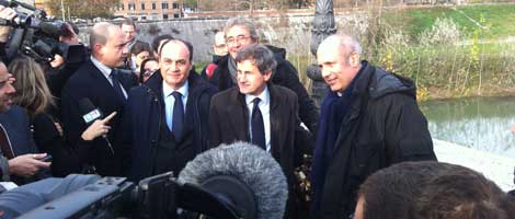 Grande ressa oggi a Ponte Milvio. Flash che abbagliano, ronzio di telecamere, decine di giornalisti e curiosi tutti stretti intorno al summit fra Alemanno, Giacomini e Moccia incontratisi appositamente per decidere la sorte dei lucchetti. Risultato? Molto accomodante.