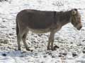 Al centro della piana, in parte gelata, sostano alcuni cavalli e asini al pascolo brado; tutto intorno neve e fango.