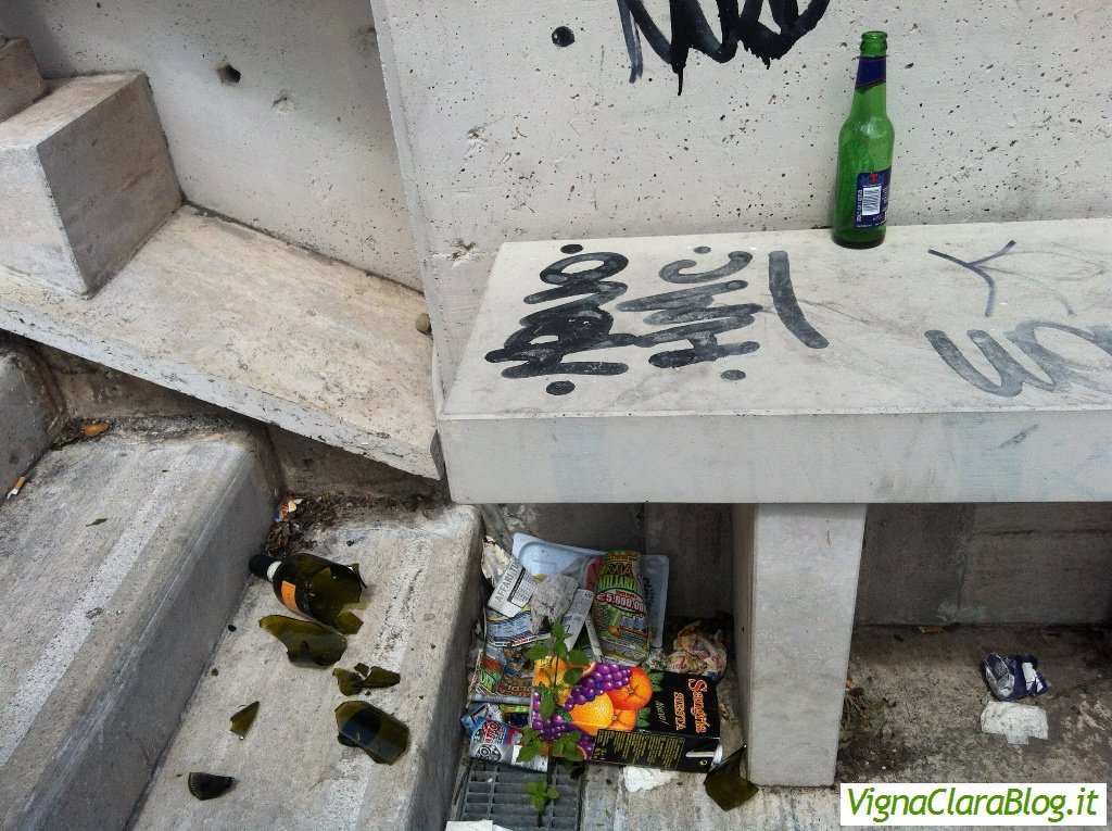 Ammiro la vostra fiducia ma, come avevo già scritto, io ho contattato il Comune, la XX, ho parlato con il gabinetto del Sindaco e con il Dott Ascensi al decoro urbano e con l’Ama. La scalinata di Via Ronciglione sembrerebbe essere terra di nessuno. Io conservo ancora tutte le foto e tutte le lettere scritte all’On. Marco Daniele Clarke, che si occupava della manutenzione urbana per il XX Municipio. Dopo un unico intervento nel 2008, la scalinata è stata nuovamente abbandonata. Ripeto, la percorro quotidianamente da 5 anni … ogni mattina è sempre peggio. Per qualche mese, l’anno scorso, una signora “volontaria” ha tentato di tenerla pulita, buttando le bottiglie e le cartacce, curando le aiuole ma, davanti al degrado, sfortunatamente e comprensibilmente, ha rinunciato.