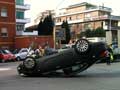 Rocambolesco incidente stradale questa mattina all’incrocio fra via della Farnesina e via Orti della Farnesina a pochi metri da piazza Ponte Milvio. Un’auto si è letteralmente capovolta dopo, così parrebbe dai primi accertamenti, aver urtato un’altra auto che secondo alcuni testimoni era ferma ma non proprio bene parcheggiata mentre secondo altri era in movimento. Fortunatamente nessun ferito.