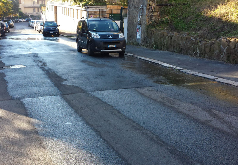 “Inoltre” continua la lettrice allegandoci le immagini che potete vedere qui sotto “questa fuoriuscita d’acqua invade la sede stradale che nelle ore notturne rischia di ghiacciarsi a causa delle basse temperature che in questi giorni hanno investito la capitale, diventando pericolosa “.