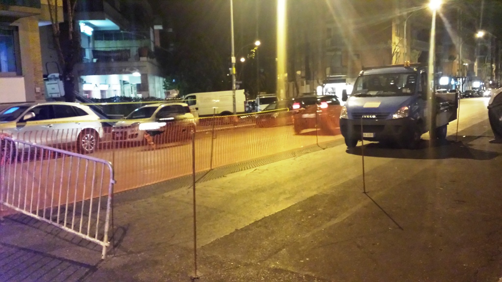 L’allarme è scattato verso le 21.40. “Si stanno aprendo delle crepe sull’asfalto” hanno detto alcuni passanti notando che il manto stradale si stava incrinando. Anche alla nostra redazione è arrivata la notizia e ci siamo recati immediatamente sul posto giungendo contemporaneamente ai Vigili del Fuoco e ai Vigili Urbani del XV Gruppo. E la notizia era vera.