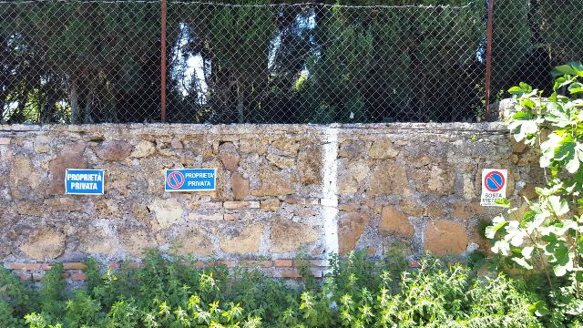 Alla nostra sinistra invece non c’è il marciapiede; troviamo alcuni parcheggi privati dei residenti e un tratto completamente lasciato all’incuria, dove flora di vario tipo cresce rigogliosa. Eppure potrebbe essere una buona area pedonale o parking.