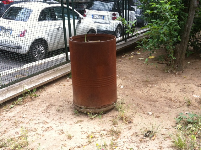 E che dire di un bidone tutto arrugginito che potrebbe ferire adulti e piccini?