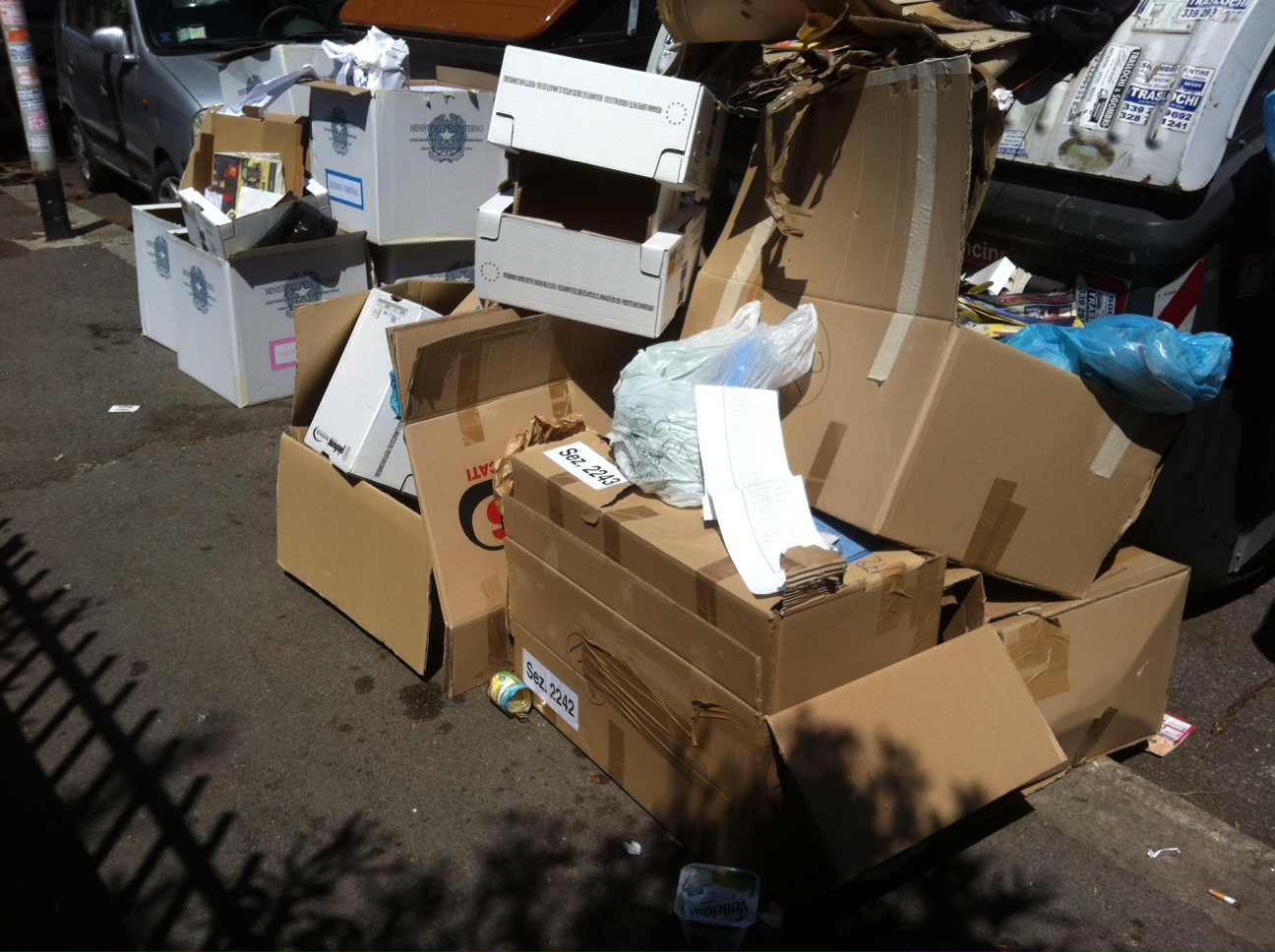 mi faccia capire: lei trova normale buttare le cose sui marciapiedi ? per lei è normale che persone pagate dal comune invece di piegare i cartoni e infilarli nei cassonetti li buttano per strada ? Sa com’è, questo suo commento mi suona molto da excusatio non petita…