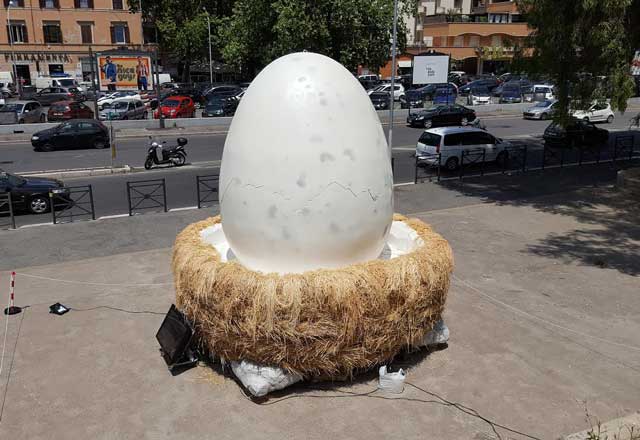 Grande sorpresa nella mattina di martedì 7 giugno a Ponte Milvio: un enorme uovo poggiato in un nido è spuntato a due passi dalla Torretta Valadier, nella stessa piazzola dove due anni fa venne annunciata la nuova Smart.
