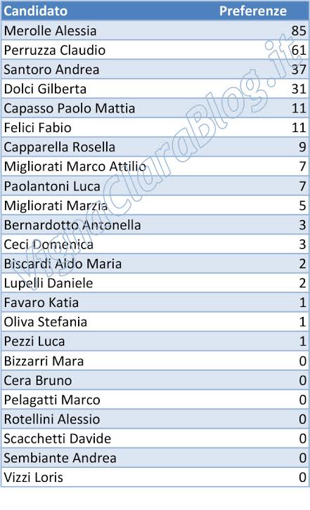 Hanno preso in tutto 620 voti pari all’1%. Ecco le preferenze.
