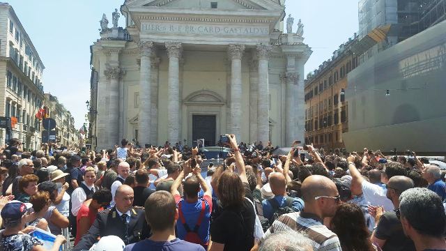 Inizia la Messa in un silenzio commosso e composto. Fuori, piazza del Popolo si riempie di persone che pur di dare l’ultimo saluto all’amato Bud si accalcano sotto il sole cocente.