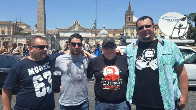Dall’Austria sono arrivati quattro ragazzi, sulle loro maglie c’è il volto di Bud Spencer. Più in là, “Bud, vedrai che anche gli angeli mangiano fagioli” recita un lungo striscione.