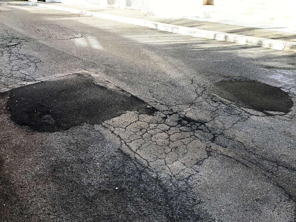 Ma non finisce qui. Perchè il giorno successivo, venerdì 24 febbraio, ancora due operai – non è dato sapere se siano gli stessi del giorno prima – passano con un piccolo mezzo e gettano un po’ di catrame in due delle tante buche presenti.