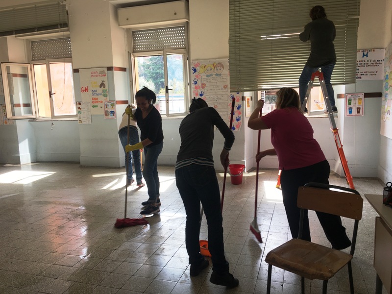 Hanno poi dipinto i padiglioni esterni e liberato gli spazi occupati da oggetti inutilizzati. Inoltre, sono state pulite a fondo sia le aule che gli ambienti interni.