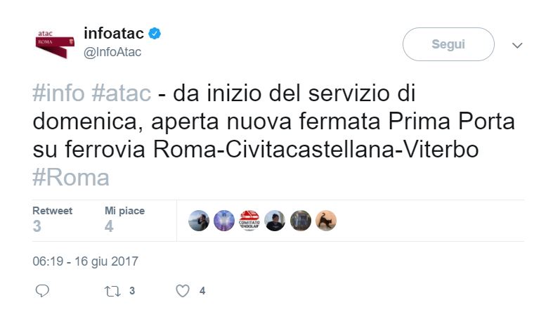 A renderlo noto è un laconico ma inequivocabile tweet di Info-Atac delle 16 e qualche minuto di oggi: