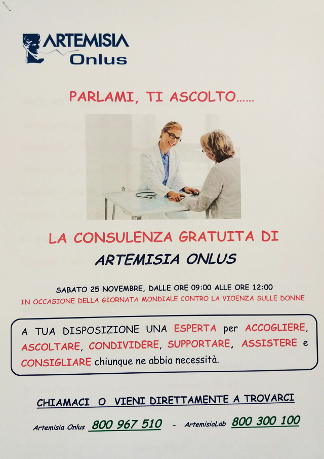 Chiamaci o vieni direttamente a trovarci” è l’invito che Artemisia Lab rivolge a tutte le interessate.
