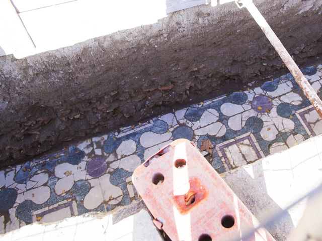 Stando alle foto che abbiamo scattato, a detta di un’appassionata di archeologia da noi interpellata pare trattarsi di un bellissimo pavimento in marmo in ‘opus sectile’, decorato, cioè, con straordinari marmi policromi, e di alcuni elementi architettonici, anch’essi di marmo, che potrebbero risalire a circa duemila anni fa.