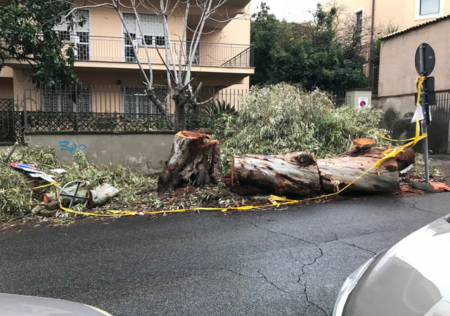 Così recitava l’avviso affisso sul posto per poi scoprire che la messa in sicurezza si è tradotta in realtà nell’abbattimento dell’alto eucaliptus, unico albero di via Bolsena e che la caratterizzava da anni.