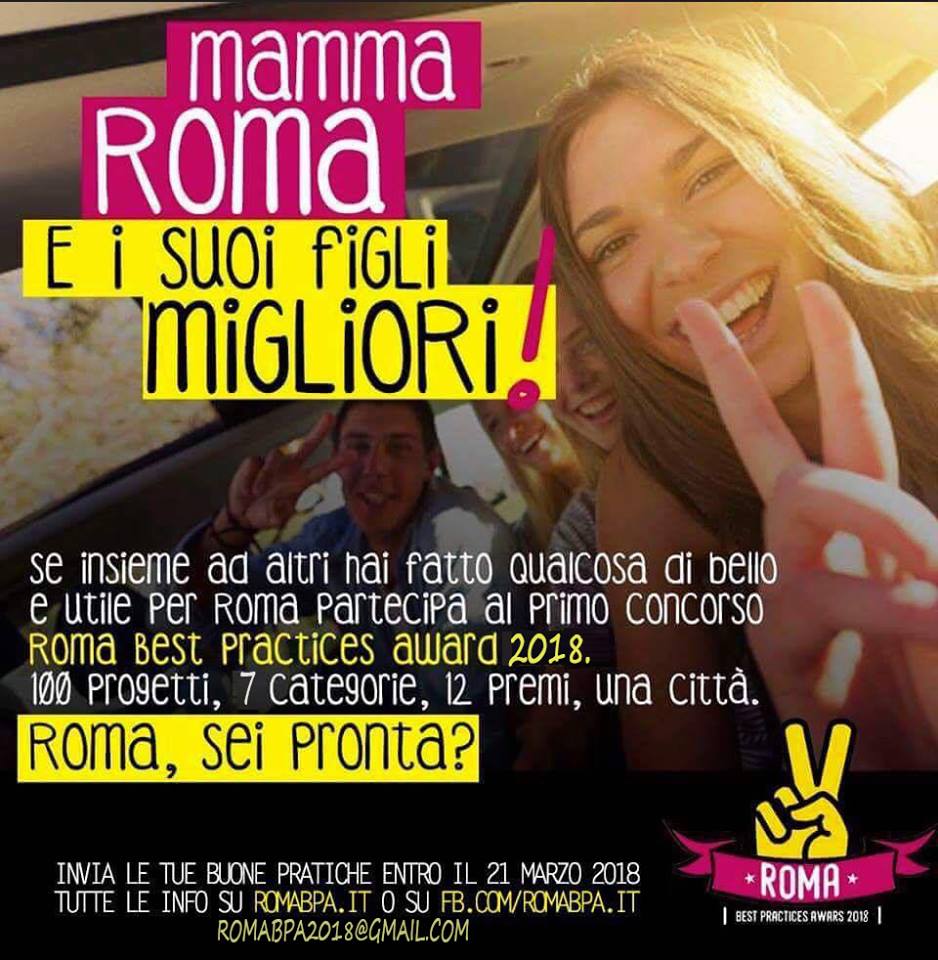 Dopo il grande successo della prima edizione del ” Roma Best Practices Award – Mamma Roma e i suoi figli migliori ” tenutasi lo scorso anno, recentemente si sono aperte le iscrizioni alla seconda edizione  e il termine ultimo per inviare i progetti è mercoledì 21 marzo.