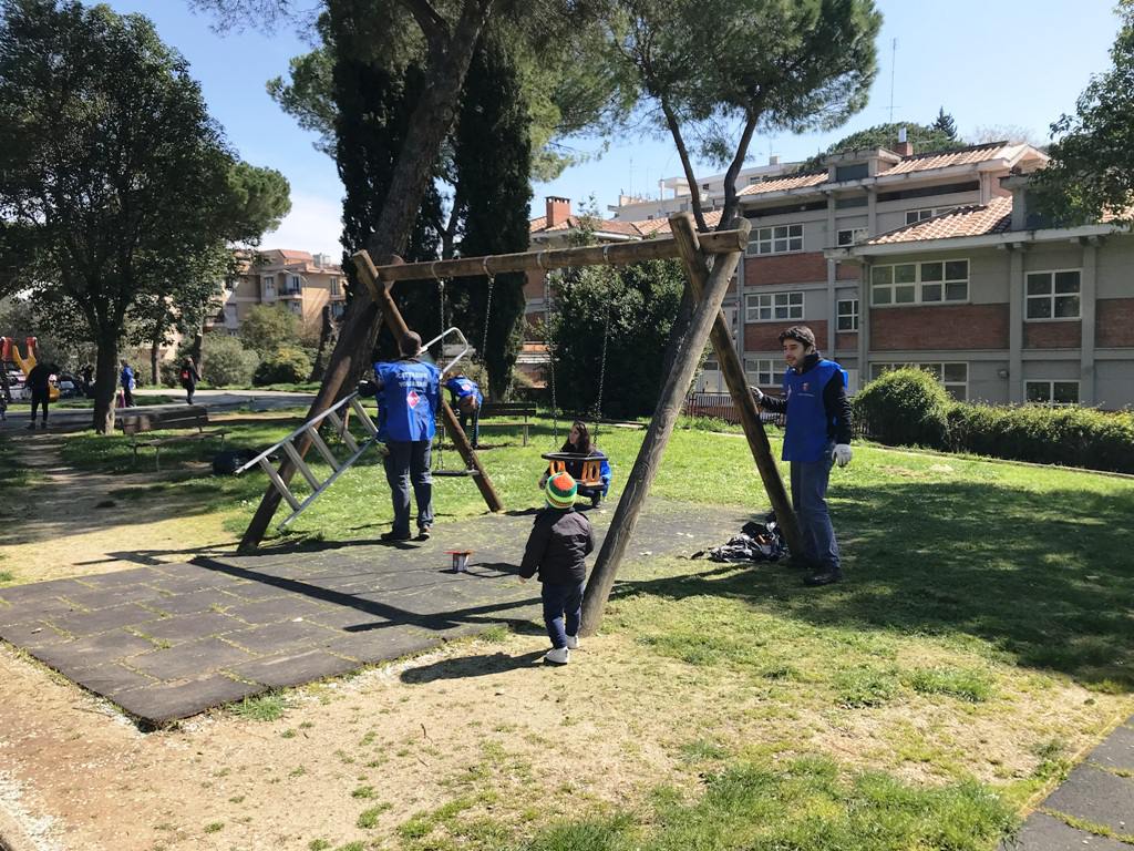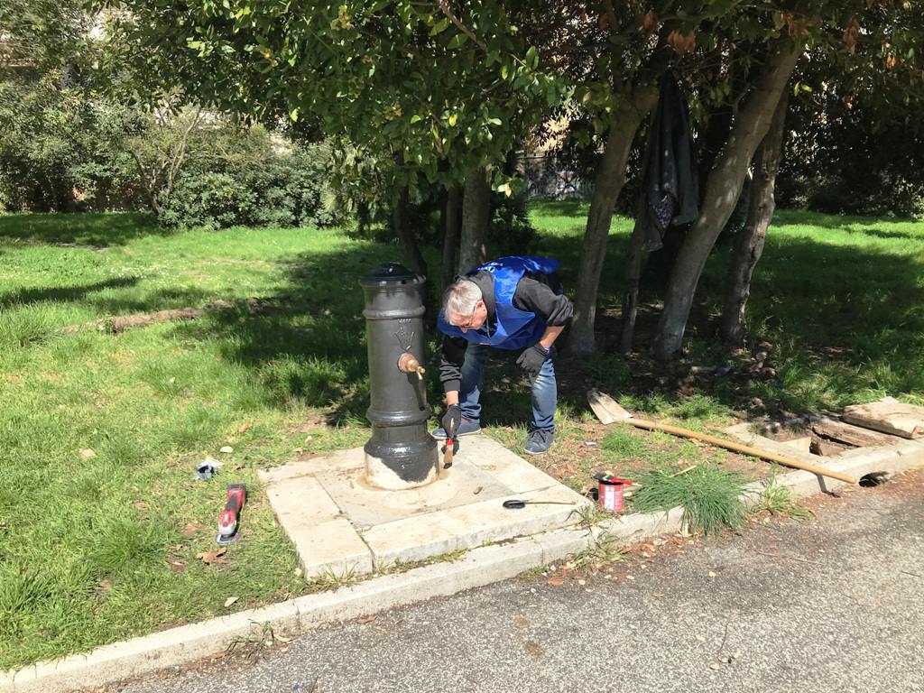 Ma non solo, giochi riparati, altalene rimesse in funzione, cancelli ridipinti e fontanella finalmente riportata agli antichi splendori. E funziona pure.