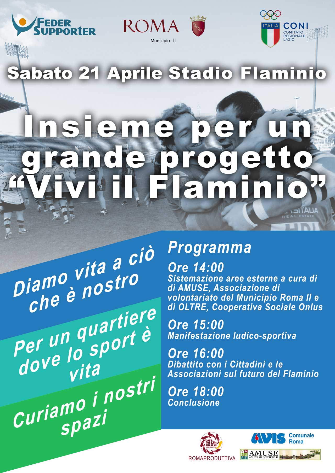 Per questo sabato 21 aprile è stata programmata una giornata per il decoro dell’impianto di viale Tiziano. Nel corso della mattina centinaia di volontari del verde di Retake Roma, in collaborazione con l’Istituto del Credito Sportivo e con il patrocinio del Campidoglio, della rappresentanza italiana della Commissione Europea e del CONI daranno vita all’iniziativa #wakeupFlaminio riqualificando l’area esterna dello stadio Flaminio.