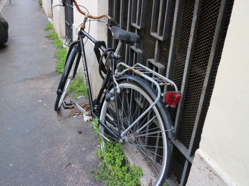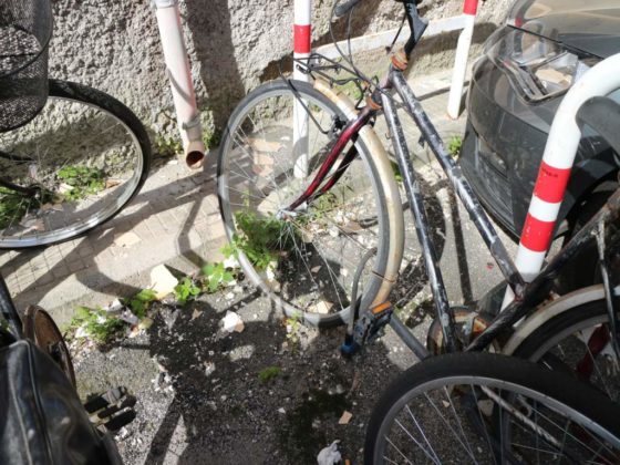 A poca distanza dalla cisterna-pattumiera abbiamo trovato anche un piccolo cimitero di biciclette: lo stato delle bici con le ruote sgonfie, danneggiate e arrugginite lascia supporre che siano li da diverso tempo.