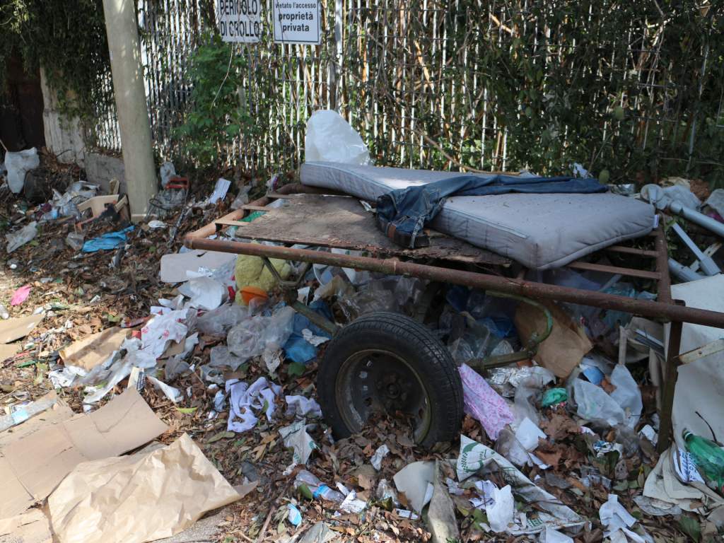 Non solo lo abbiamo mandato in malora ma lo abbiamo anche trasformato in un bidone della spazzatura; mentre la struttura va in pezzi al suo interno crescono i rifiuti e i detriti.
