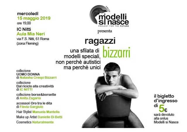 Mercoledì 15 maggio, nell’aula Mia Neri dell’IC Nitti, al Fleming, si terrà l’evento “Ragazzi Bizzarri”. Organizzato dall’Associazione no profit Modelli si Nasce e tappa importante di un percorso nato con l’idea di dare ai ragazzi autistici un futuro dignitoso e di aiutarli nel mondo del lavoro.