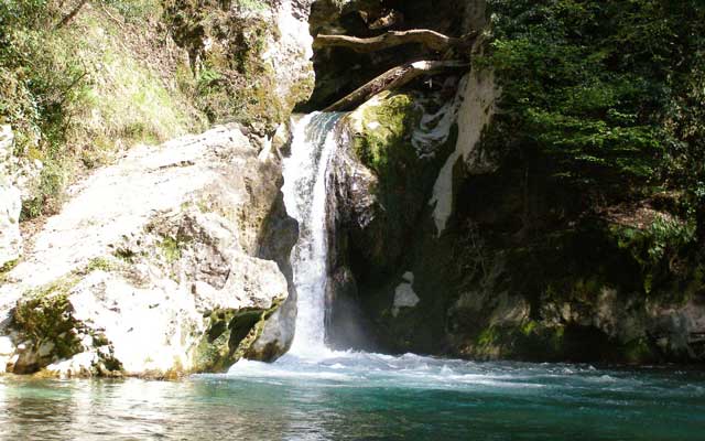 Percorsi un paio di chilometri, ai piedi di una lunga falesia, si può parcheggiare e se lo si desidera si può scendere prima al laghetto di San Benedetto; un sentierino di circa 500 metri dal parcheggio vi porterà sulle rive di un delizioso laghetto formato da una splendida cascata.