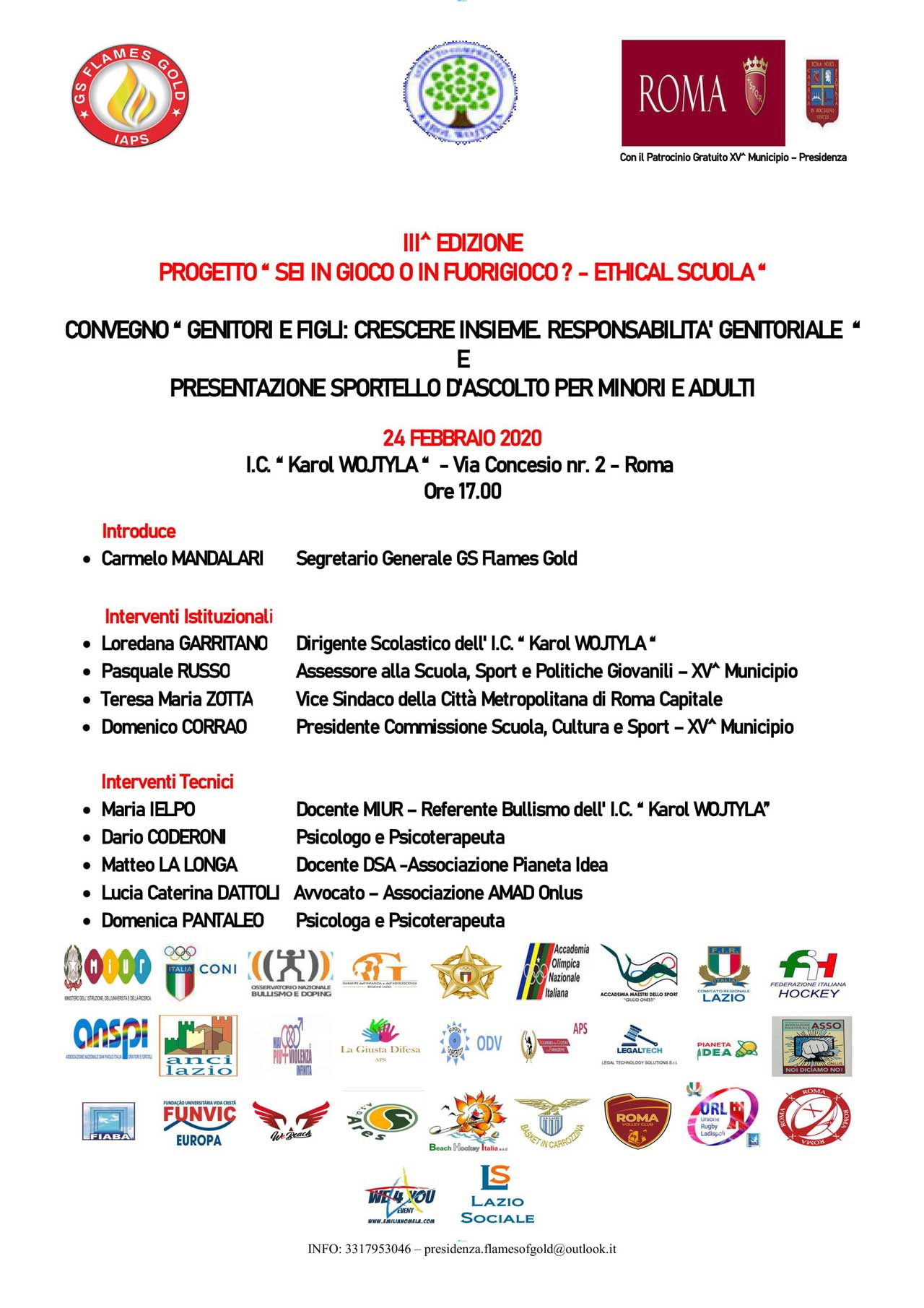 Nuovo appuntamento nel XV Municipio da parte del GS Flames Gold nell’ambito della terza edizione del Progetto “Sei in gioco o in fuorigioco? Ethical Scuola“, teso a prevenire il bullismo, cyberbullismo e disagio giovanile.