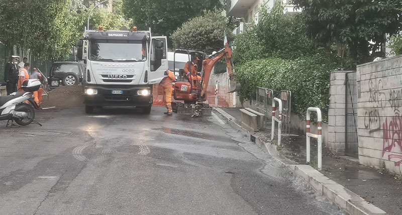 Acea di nuovo al lavoro dunque dopo aver appena riparato il danno poco più giù, all’incrocio con via Orti della Farnesina dove lunedì 11 maggio si era verificata una prima rottura.