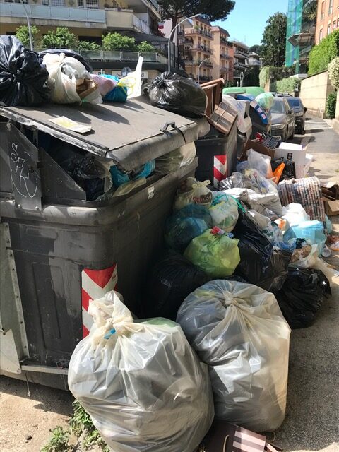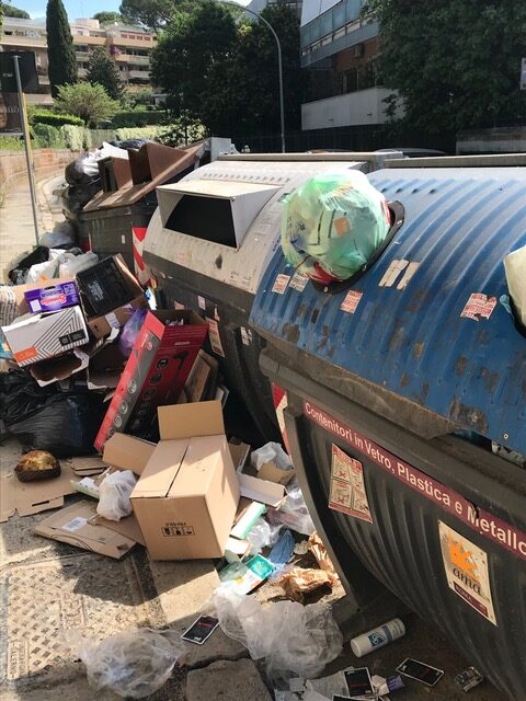 Passata la festa gabbato lo santo, ovvero rimessili a posto l’Ama da allora si è dimenticata di svuotarli. Oggi, 20 maggio, si presentano così.