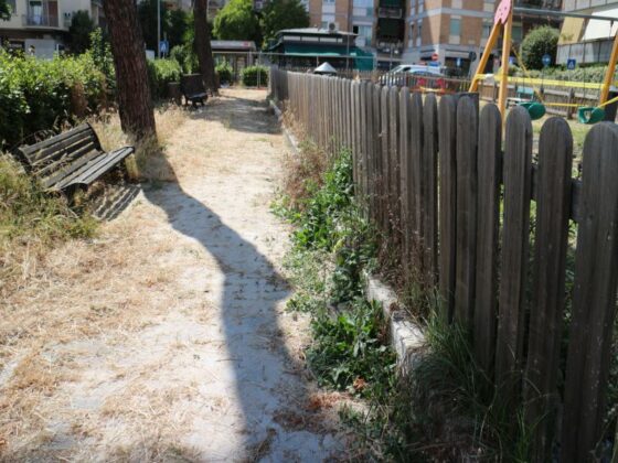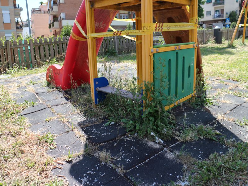 Un Parco, o meglio, un giardinetto oggi chiuso e strangolato dal degrado da oltre tre anni di cui è mission impossible ipotizzare come e quando riaprirà. Per il momento l’unica iniziativa intrapresa è stata quella di tagliare l’erba intorno all’area giochi per poi lasciarla in terra ad ingiallire, giusto per rendere ancora più deprimente l’immagine di quello che era l’orgoglio del quartiere.