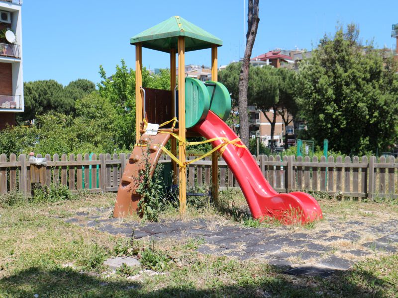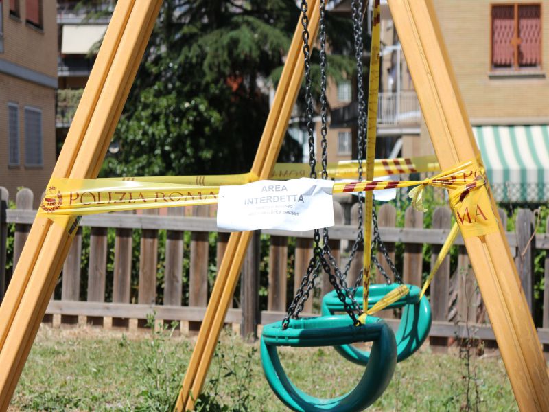 E poi panchine sgangherate, siepi mai potate, erbacce, rifiuti e i giochi dei bambini sigillati con l’onnipresente nastro giallo-rosso, e da molto, molto prima che tutte le aree giochi fossero sbarrate per effetto del covid 19.