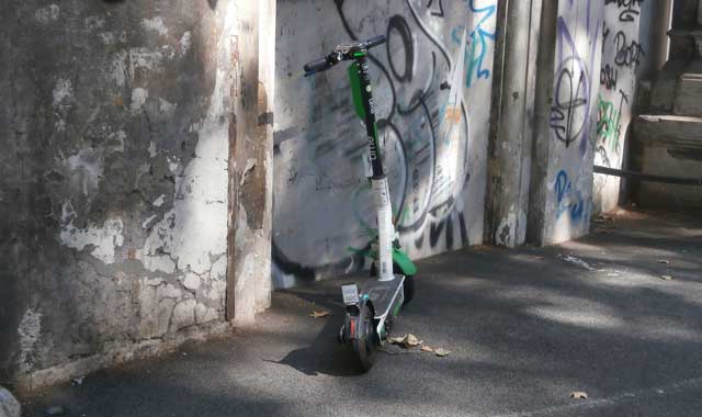 D’altra parte a Roma si sa che i marciapiedi a tutto servono meno che a dare sicurezza a chi li dovrebbe usare, ovvero i pedoni; destinati ad ospitare ogni cosa, dai pannelli pubblicitari alle fioriere e ai cassonetti si utilizzano per lo più per il parcheggio delle auto e motocicli: figuriamoci se non vanno bene per i più piccoli monopattini.