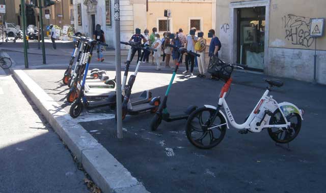 Ora è la volta dei monopattini elettrici che sembrano essere diventati, specie al centro di Roma, una presenza ingombrante e ossessiva soprattutto nei luoghi della movida o quelli più visitati dai turisti stranieri.