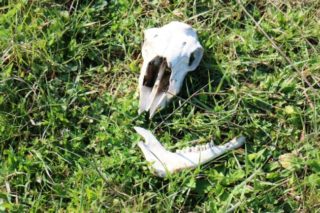 Ovviamente non mancano i cinghiali: con la nostra presenza abbiamo disturbato un grosso esemplare che riposava beatamente al margine della boscaglia godendo di un sole quasi primaverile. Tantissime anche le tracce degli istrici che, nella ricerca del cibo, scavano piccole fosse circolari.